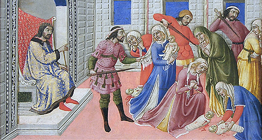 Sprawcą okrutnego mordu był król Judei, Herod. Zaniepokojony przyniesioną przez Mędrców ze Wschodu informacją o przyjściu na świat w Betlejem króla żydowskiego, postanowił zagrażające, jak mniemał, jego władzy Dziecię podstępnie pochwycić i zabić. Gdy mu się to nie udało, gdyż uczeni mężowie nie donieśli mu o miejscu, w którym spotkali Syna Bożego, polecił swoim żołnierzom zamordować wszystkich betlejemskich chłopców w wieku do lat dwóch, co bezwzględni siepacze niezwłocznie uczynili.